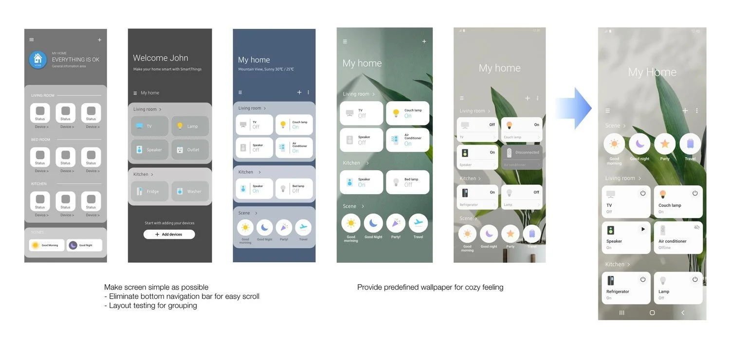 The existing version of the SmartThings app contained too many features and was too cumbersome for users due to the complexity of the app structure. The previous version was rated as one of the most difficult-to-use apps created by Samsung. Moreover, since competitors like Google, Apple, and Amazon are leading the smart home market, it was critical for Samsung to increase its user base of SmartThings. So, we set our goal to create a simple and easy smart home service that even novice users can use.
